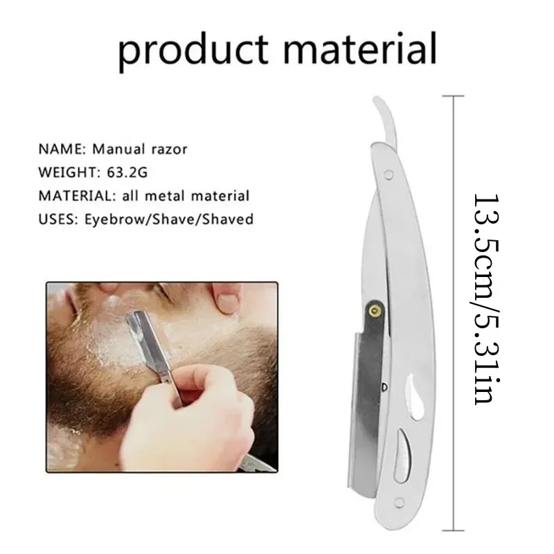Få en klassisk, tett og komfortabel barbering med Foldable Shaving Knife for Men, en høykvalitets barberhøvel i rustfritt stål designet for profesjonell presisjon og daglig bruk. Denne dobbeltbladede manuelle barberkniven gir maksimal kontroll og skarphet, ideell for forming av både skjegg og bart.