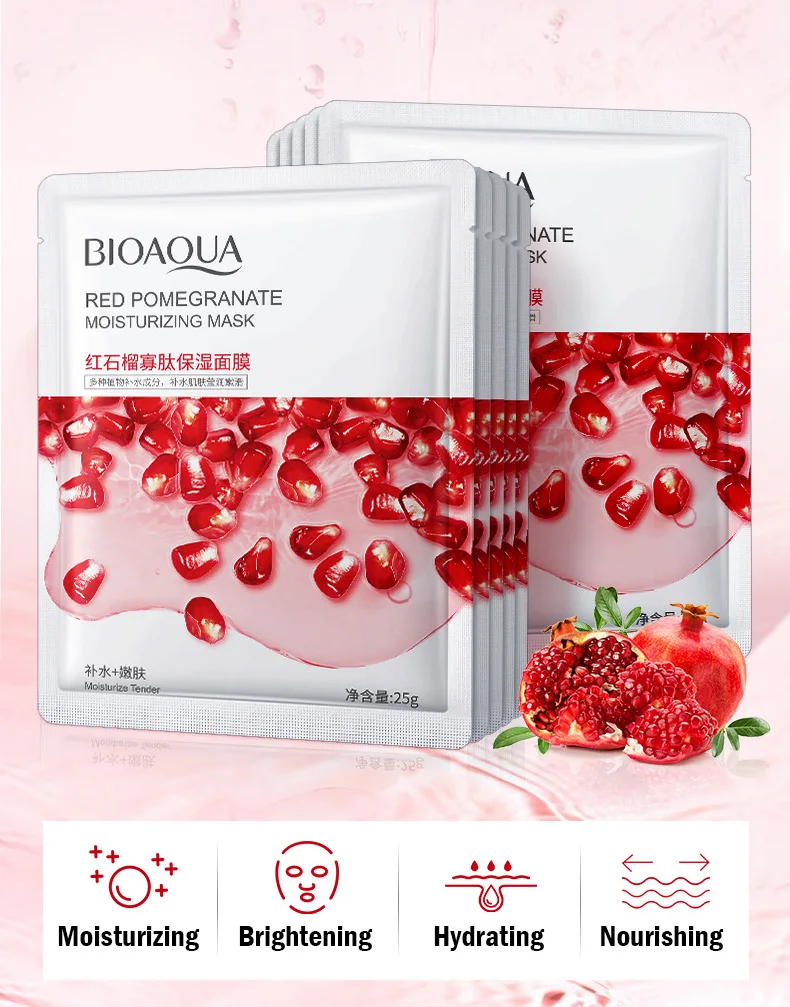 BIOAQUA ansiktsmaske, fruktmaske, fuktighetsgivende maske, anti-age maske, sheet mask, koreansk hudpleie, glødende hud, naturlig hudpleie, brightening mask