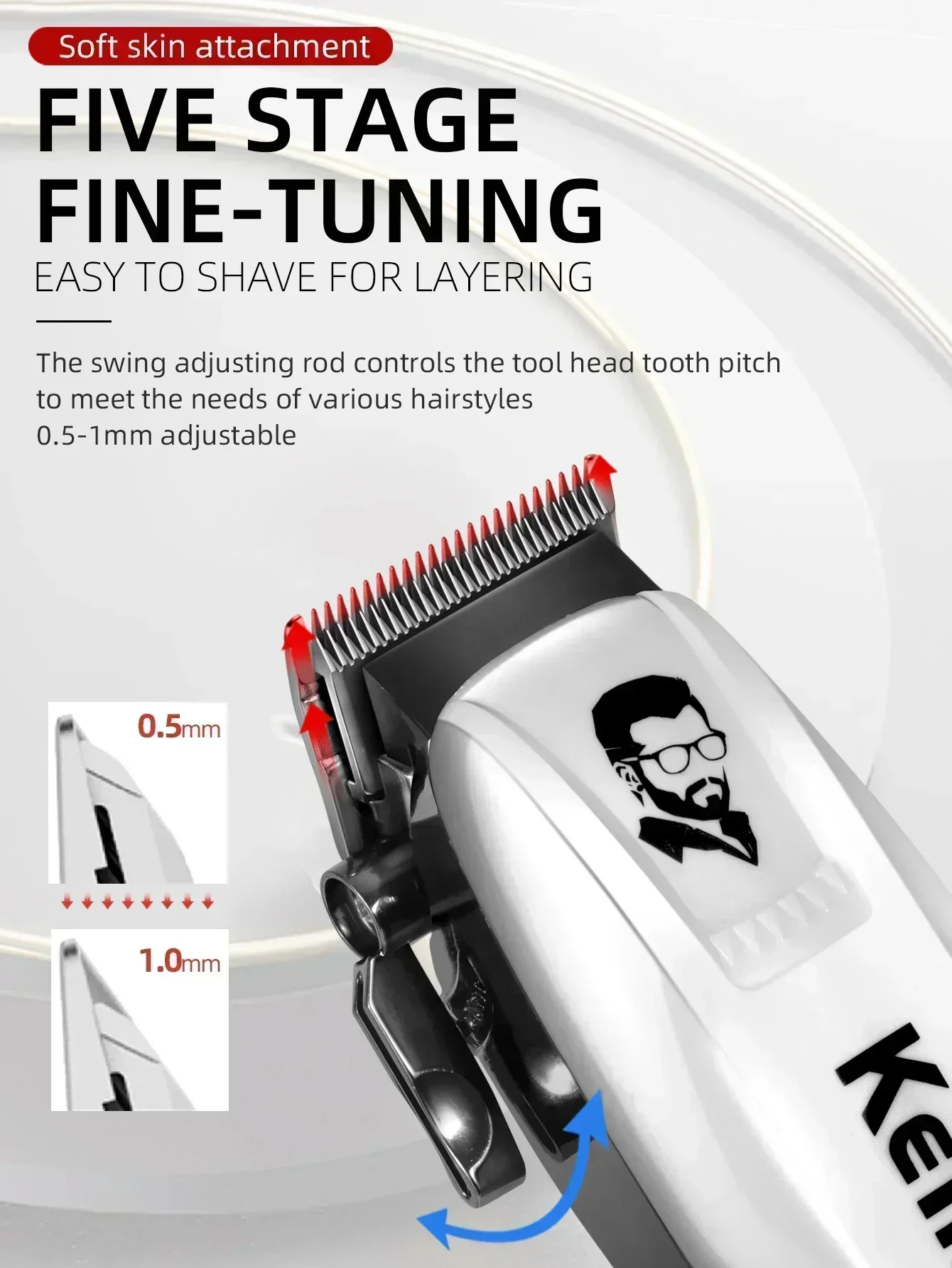 1 × Kemei KM-2024 barbermaskin