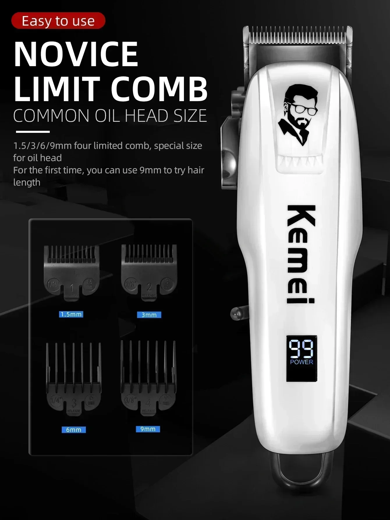Kemei KM-PG809A, Kemei KM-1506, Kemei KM-2024, Kemei hårklipper, profesjonell hårtrimmer, skjeggtrimmer for menn, elektrisk hårklipper, trådløs barbermaskin, hårtrimmer med LED-display, Kemei klippesett