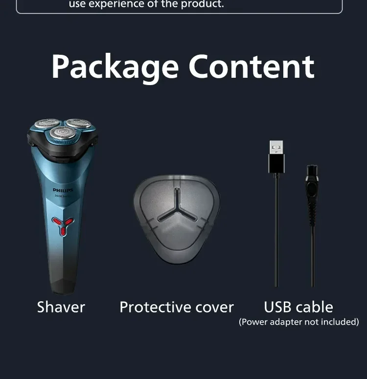 Philips S2313, Philips Series 2000, barbermaskin for menn, elektrisk barbermaskin, lavfriksjonsringer, sensitiv hud barbermaskin, våt og tørr barbering, USB-lading, IPX7 vanntett