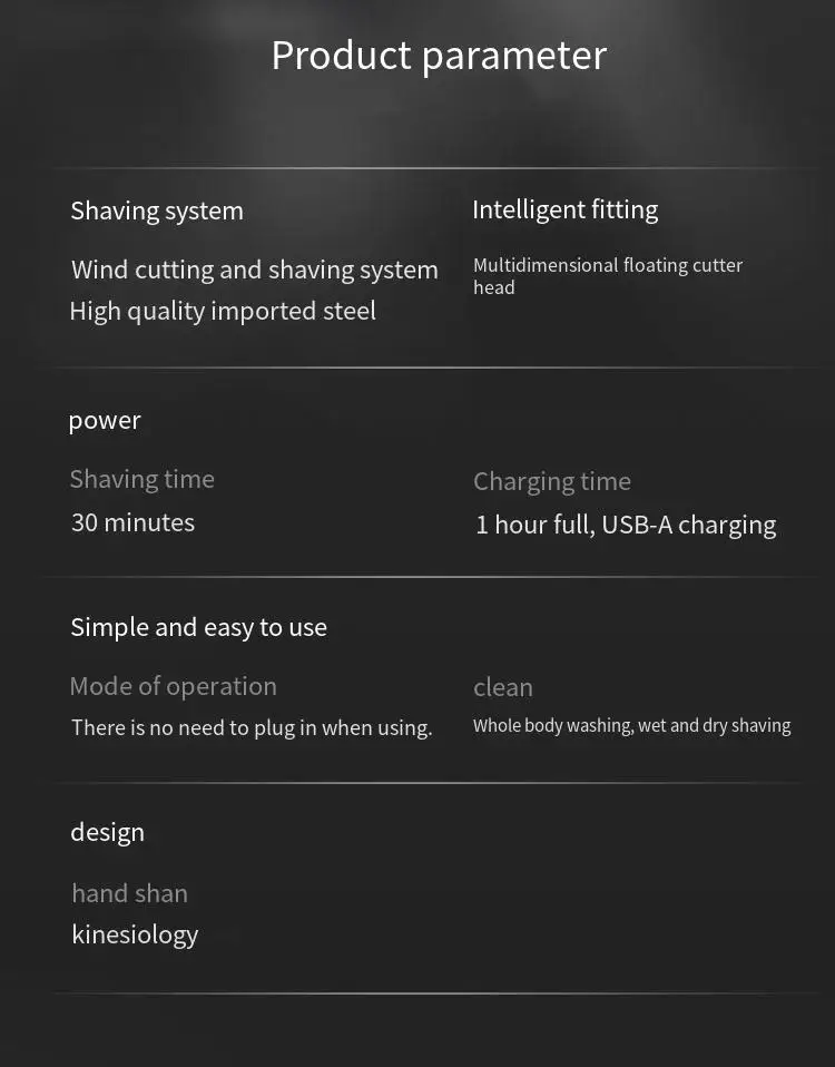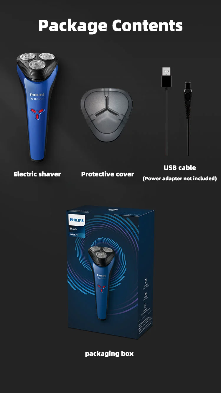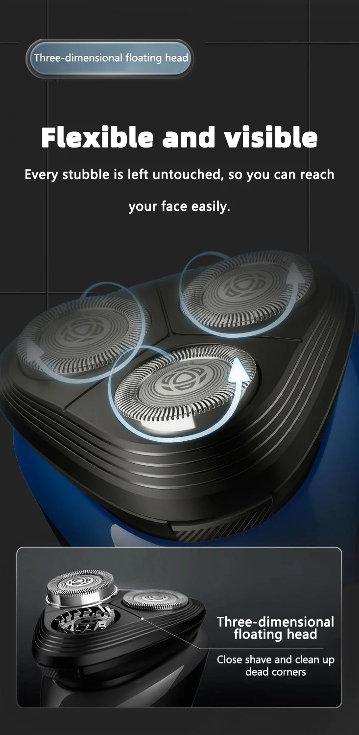Elektrisk barbermaskin med trippel roterende blader i rustfritt stål