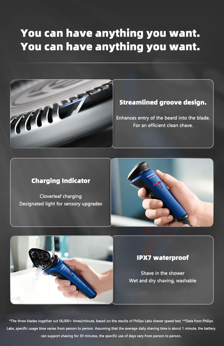 barbermaskin, elektrisk barbermaskin, Philips S1125/02, våt og tørr barbering, oppladbar barbermaskin, trippelblad, Philips barbermaskin, roterende barbermaskin