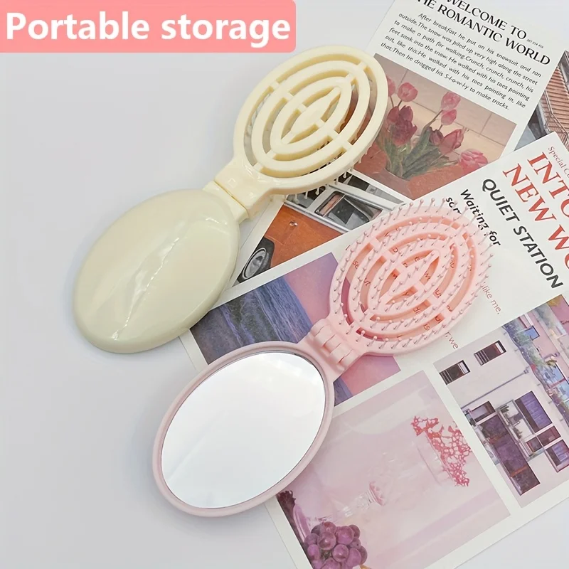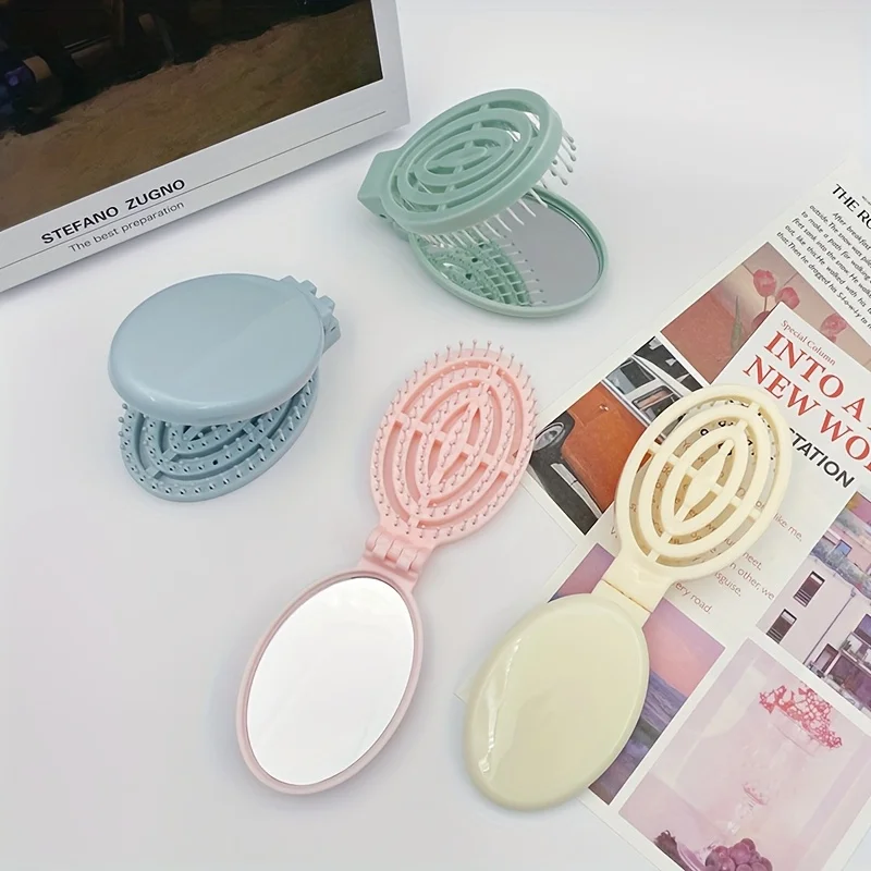 Sammenleggbar hårbørste med speil – kompakt, praktisk og perfekt for reise