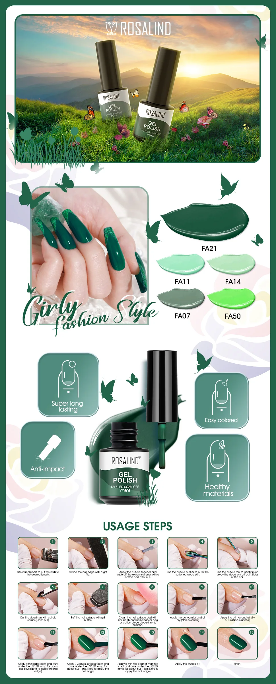 SEO-nøkkelord: ROSALIND gel neglelakk, mood changing neglelakk, grønn neglelakk, fargeforandrende neglelakk, soak off gel polish, uv led neglelakk, miljøvennlig neglelakk, profesjonell manikyr, gel polish sett, kreative negler