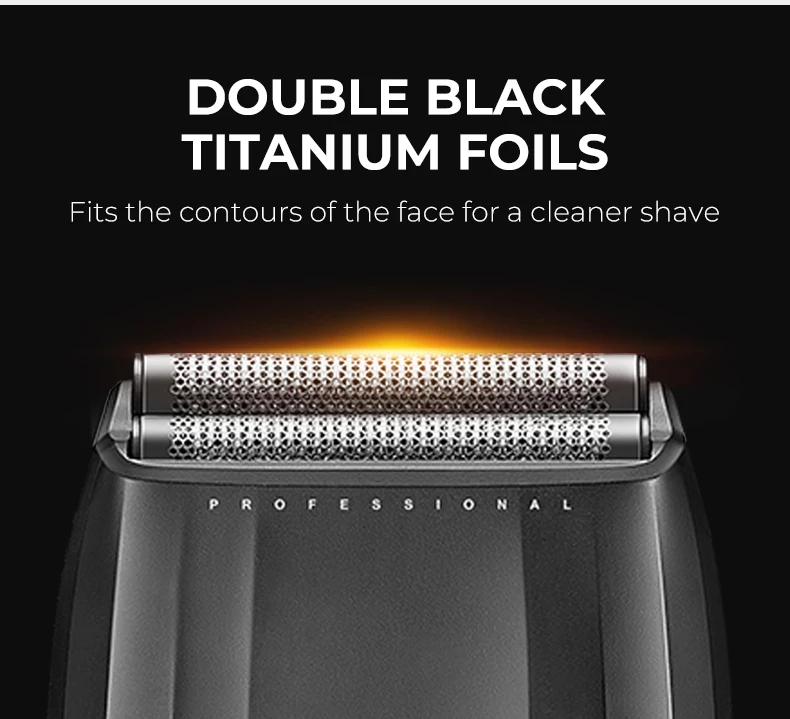Det digitale LED-displayet viser batteristatus, hastighet og vedlikehold i sanntid, slik at du alltid har full kontroll. Den doble Black Titanium Foil-shaveren sørger for tett barbering uten irritasjon, mens metallkonstruksjonen gir premium følelse og lang levetid.