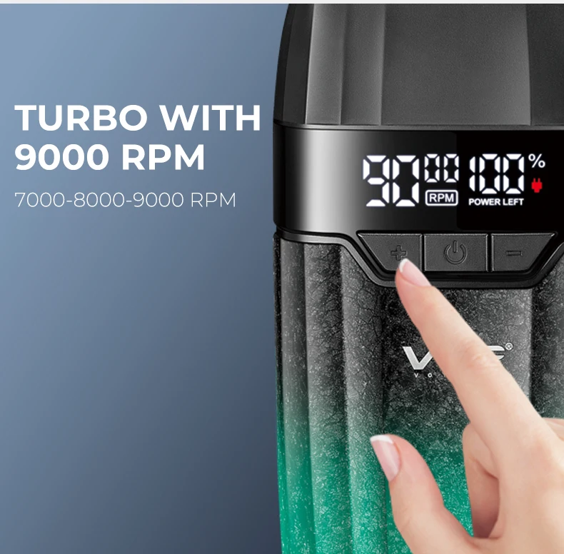 VGR V-640 S3 Profesjonell hår- og skjeggtrimmer – 9000 RPM metalltrimmer med DLC-blader og digitalt display